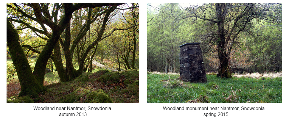 2019 Intimate Land - thirty years on a digital version of a book I made in 1988 as a response to the conifers planted in 1965 covering the intimate landscape of pasture and oak woodland. Now thirty years after clearing the conifers and planting broadleaf trees at Hafod we embark on the next stage of returning the land back to a beautiful and diverse landscape. See Woodland Pasture - conifers to cows on YouTube.